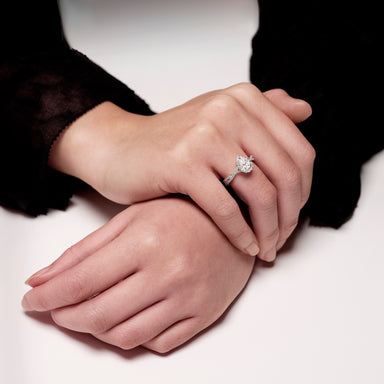 Our Alice ring is crafted in 9ct Yellow Gold and showcases a 0.50ct pear-shaped centre stone, surrounded by a shimmering halo of lab-grown diamonds...