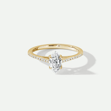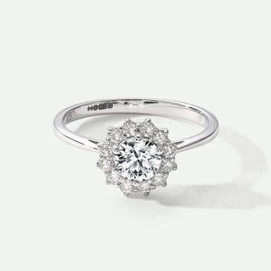 Our Ida ring is beautifully crafted in 9 carat yellow gold and set with a brilliant lab grown diamond centre stone framed by a halo of pavé set dia...