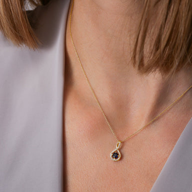 9ct Yellow Gold Created Sapphire and Lab Grown Diamond Necklace
