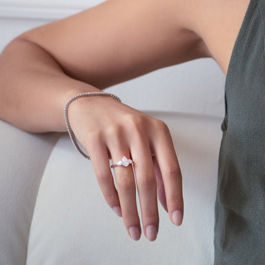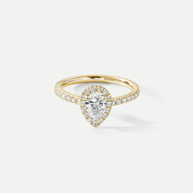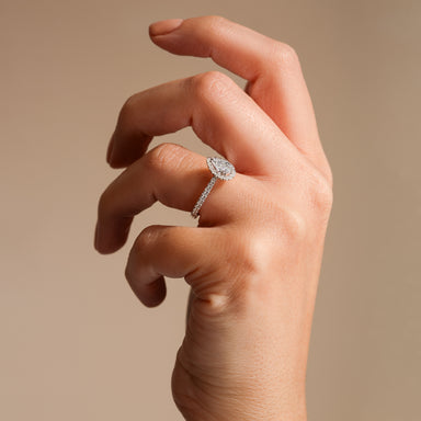Our Rachel engagement ring is set with a gorgeous pear-shaped lab-grown diamond stone and embellished with pavé set diamond shoulders. It is crafte...