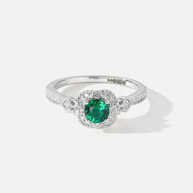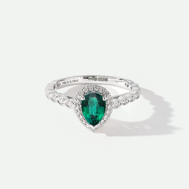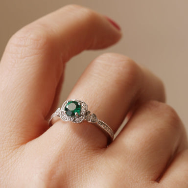 18ct White Gold 0.12ct tw Lab Grown Diamond and Created Emerald Vintage Ring