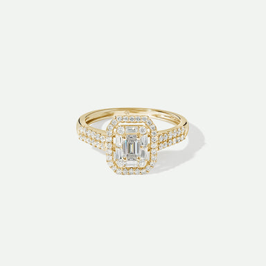 Inspired by vintage design and created with exquisite craftmanship, our Vera ring is set with an emerald-cut vibrant green created emerald centre s...