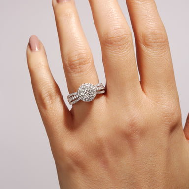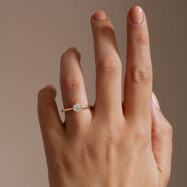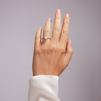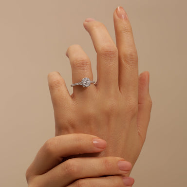 Our lab grown diamond and created emerald Cate ring is set with a vibrant green created emerald centre stone framed by a cluster of lab grown diamo...