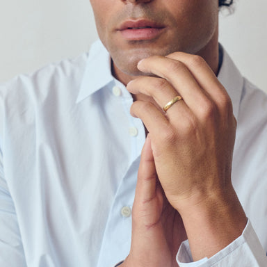 Our wedding bands are available with either diamond or gemstone detailing, or as simple plain gold bands. We have vintage-inspired designs, modern pave-set diamond wedding bands, and entwined gold wedding rings. Some of our range of gold bands are curved to fit snugly next to your diamond engagement ring.