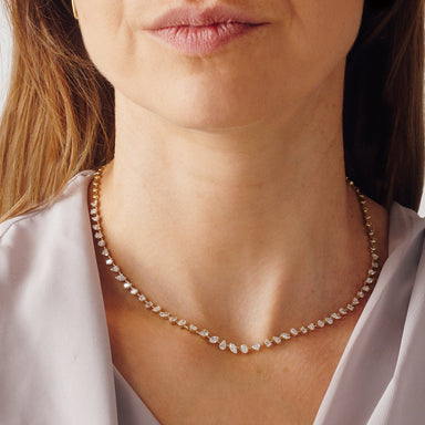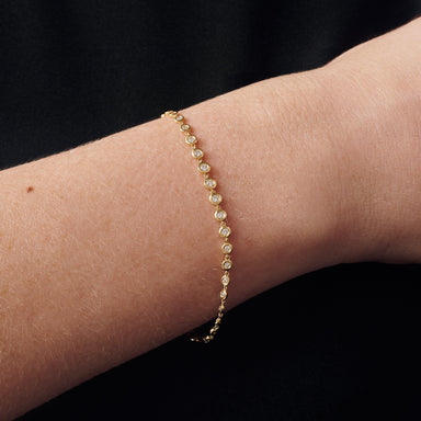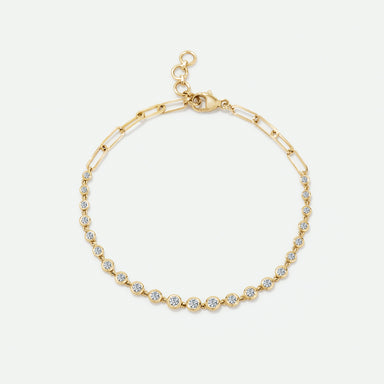 Make a statement with the Athena tennis bracelet in 9ct yellow gold. Crafted with 25 bezel-set emerald-cut lab-grown diamonds totalling 3.67ct, thi...