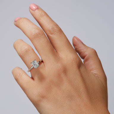 Crafted in luxurious platinum 950, our Raya ring boasts a classic radiant design, showcasing timeless beauty. The ring features a diamond hidden h...