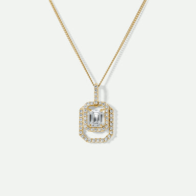 9ct Yellow Gold 0.75ct tw Emerald Cut Lab Grown Diamond Double Halo Necklace 18 Inches