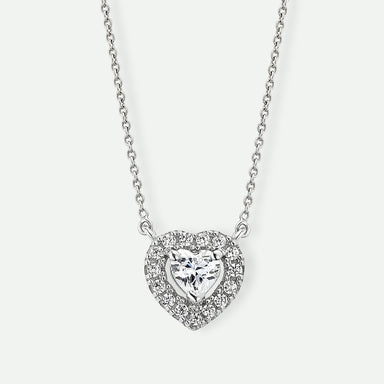 Our Tessa necklace is set with a beautiful heart shape lab grown diamond. The centre stone is framed by a halo of pavé set lab grown diamonds for a...